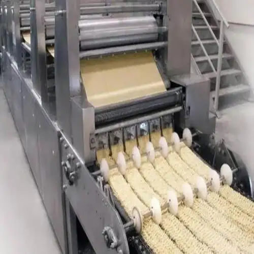 Fully automatic stainless steel noodle making machine with a polished finish. Delivers 100-200 kg/hr output and a capacity of 300mm for efficient production.
