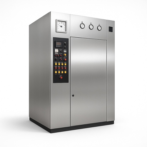 Fully automatic, three-phase stainless steel steam sterilizer. Operates on 430V with a polished finish for enhanced durability and hygiene. Ideal for various sterilization needs.