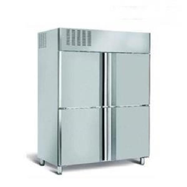 Electric tabletop refrigerator made from polished stainless steel. This durable equipment offers reliable refrigeration performance for various applications.