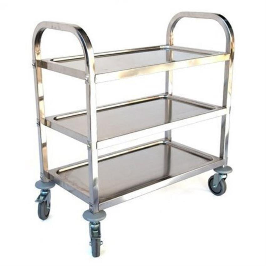 Stainless Steel Tray Equipment with polished finish. Supports 0-50 kg load capacity. Features 4 wheels. Ideal for hospital applications.