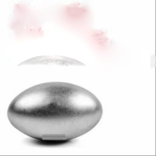 Silver polished stone mercury shaligram, oval shaped, for worship. Crafted from durable stone material with a smooth, finished surface. Suitable for religious ceremonies.