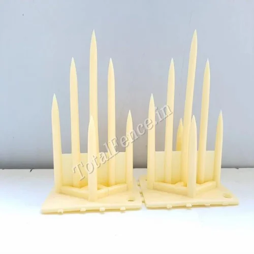 6-inch polycarbonate plastic monkey spikes suitable for building, industrial, and residential use. Available in Ivey, gray, white, and green.