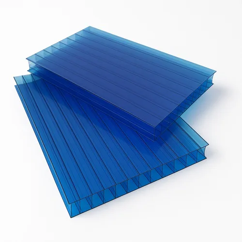 Polycarbonate multi wall hollow sheet, 6mm thickness, rectangular shape, blue color. Durable and lightweight, suitable for various applications.
