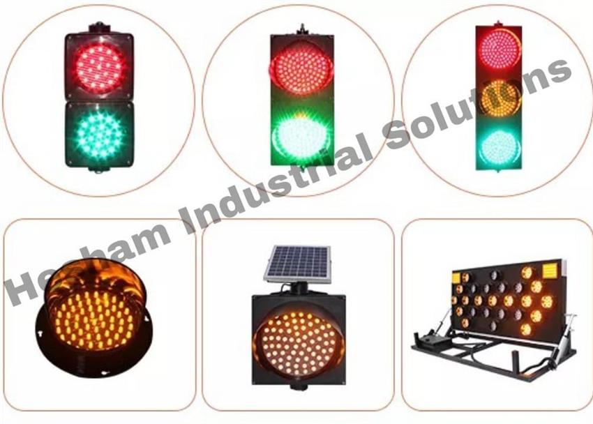 Green polycarbonate traffic signal light for road safety. Features 40W solar power. Made in India.