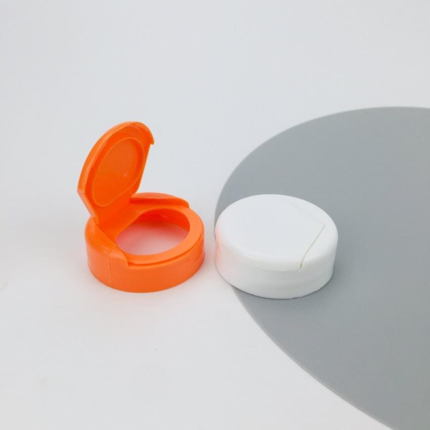 Customizable 38mm polypropylene fliptop cap for tablet containers. Round shape, available in stock. Minimum order 3000 pieces.