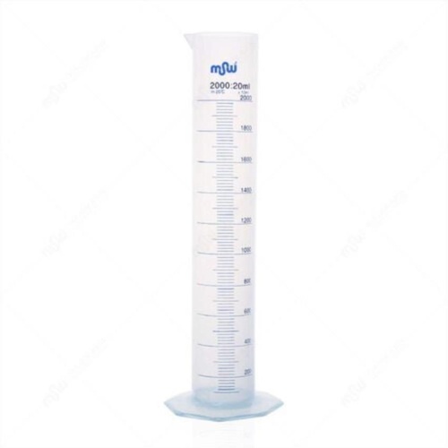 Polypropylene cylindrical measuring cylinder with hexagonal base. Transparent design, capacity from 10ml to 1000ml. Made in India for diverse laboratory needs.