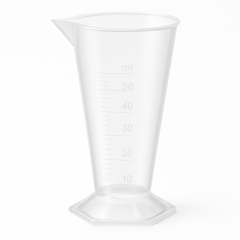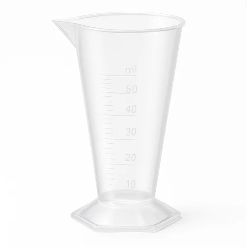 This transparent, 50 ml polypropylene conical measure is ideal for chemical laboratory use. Made in India, it is sold new in a 12-piece packaging.