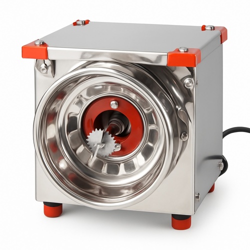 Silver portable coconut scraper equipment for commercial applications. Crafted from stainless steel and made in India. Ideal for businesses requiring efficient scraping.