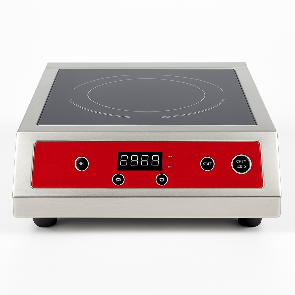 Portable 3500W commercial induction stove for hotel use. Operates at 380V and includes a 3-year warranty. Efficient and compact for catering and restaurant kitchens.