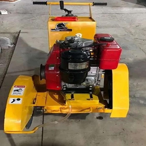 Portable mild steel concrete groove cutting machine with a 5 hp Greaves diesel engine. Ideal for construction, offering a 5-ton compaction and 7-8" max cut depth.