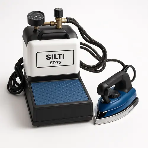 New, manual, single-phase portable electric steam boiler (ST-75) made of mild steel. Operates on 230V, 2 kW power, with 3.5 kg working pressure. Made in India.