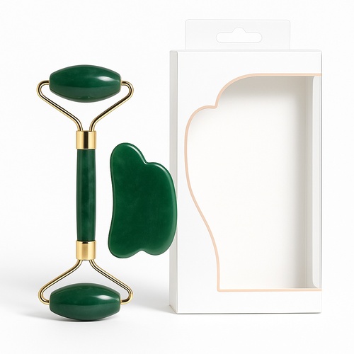 This portable green stone roller with guasha tool is made of natural stone. Ideal for facial massage and beauty routines. Minimum order quantity: 120 pieces.