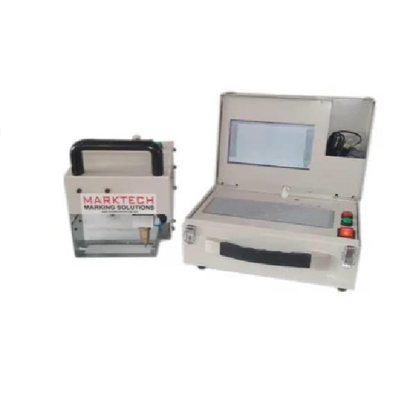 Portable pin marking device with LCD controller. Operates at 220V, 50Hz, single phase. Features an 80x30mm window size and withstands 50°C temperatures.