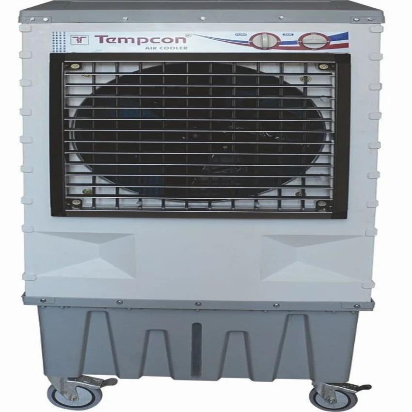 This portable air cooler features a 95 L capacity with platinum fibre and plastic construction. It is designed for efficient cooling in various environments, offering portability and substantial water storage.