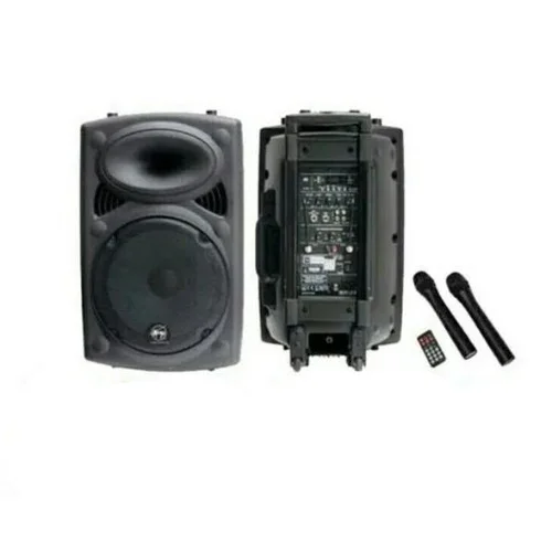 This trolley speaker machine delivers 126 dB SPL, with a 50 Hz-20 kHz frequency range and 95 dB SPL sensitivity. Power rating is 300W/600W pink noise.