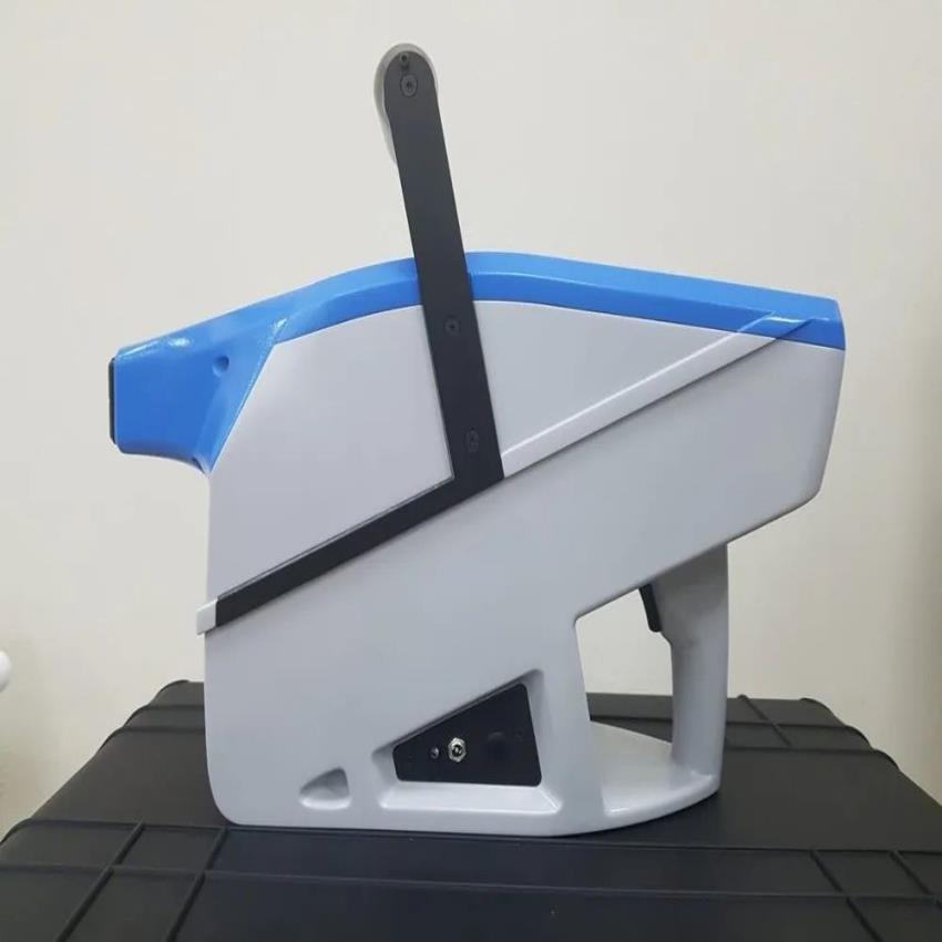 Portable X-Ray Fluorescence Spectrometer with a 5-inch color touch screen. Features Wi-Fi/Bluetooth data transfer, 32 GB memory, and operates on a replaceable Li-ion battery.