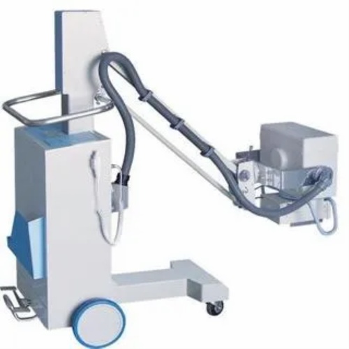 This portable X-ray machine offers radiography capabilities with manual operation. It features a 100 mA current and 100 kvP peak kilovoltage, suitable for diagnostic imaging.