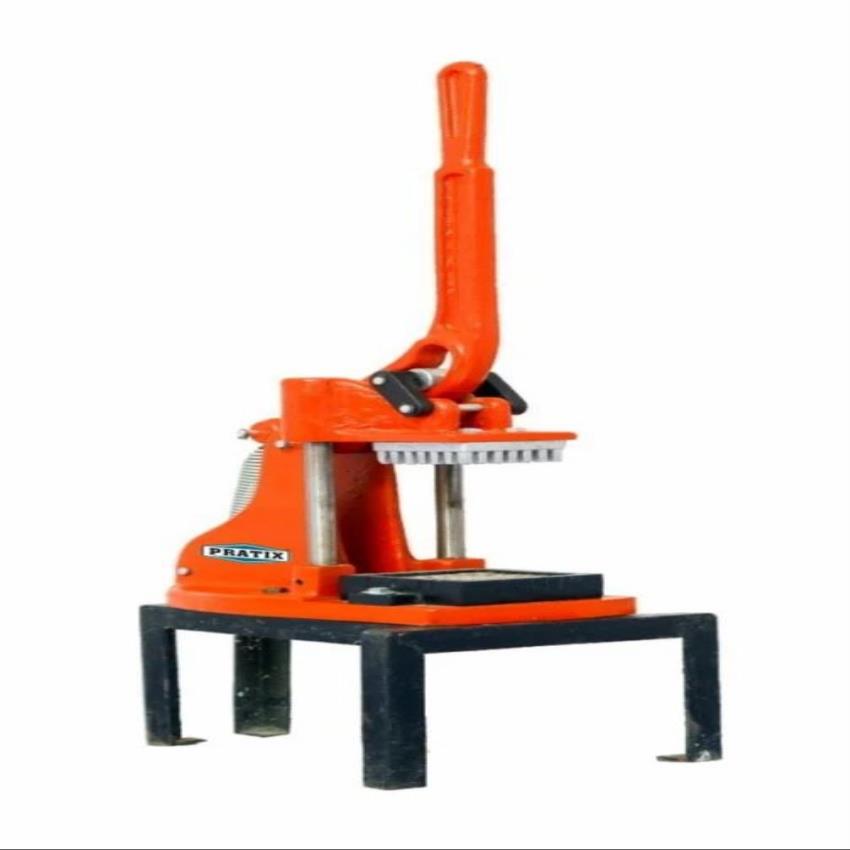 This manual potato chip machine features a C.I. Casting body with stainless steel components. Available blade sizes include 7MM/10MM. It weighs 13Kg and is made in India.