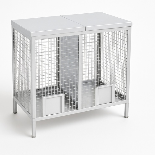 Features two SS 304 bins with 22 SWG inner body sheets. Dimensions: 24x24x34 inches. Model TS-09.