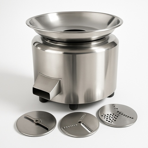 Potato slicer machine equipped with three interchangeable dies for versatile slicing options. Engineered for reliable performance in demanding kitchen environments.