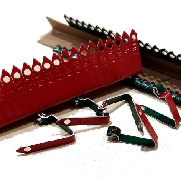 Aluminum wing bands for chickens used in brooding applications on poultry farms. Supplied in a box. Essential equipment for bird identification.