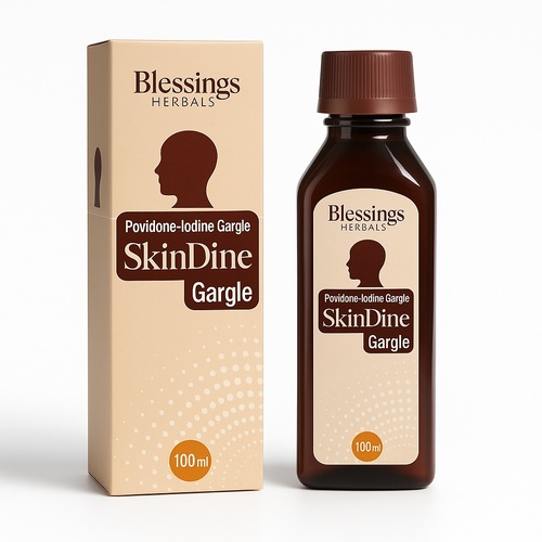 Organic povidone-iodine syrup, 2% w/v, in 100 ml bottles. Used for oral hygiene, reducing infections, and relieving sore throat and inflammation. Minimum order quantity: 100 bottles.