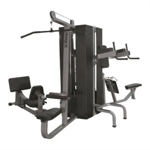 Four-station gym machine (L-48"xW-36"xH-78") with powder coating. Features PU foam seat (2" thick) and 100mmx50mmx5mm thick pata for gym applications.