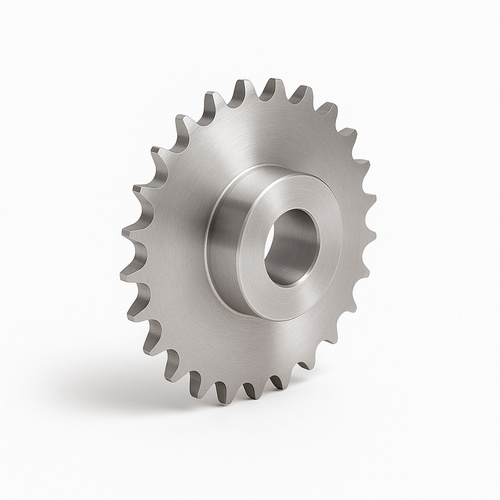 Powder coated stainless steel industrial chain sprocket, silver color. Semi-automatic grade, suitable for various industrial applications requiring robust performance.