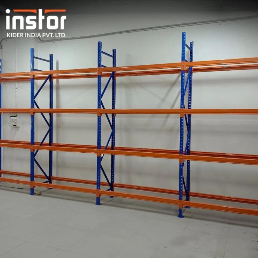 Powder-coated MS pallet rack for warehouse use. Dimensions: 900mm (L) x 600mm (D) x 2400mm (H). Storage capacity: 500 Kg per level.