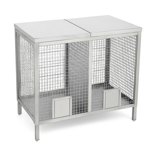 Grade 304 stainless steel bin with powder-coated finish. Corrosion resistant, high load capacity of 50-60 Kg.