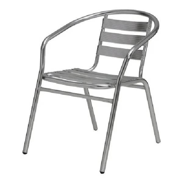 SS304 stainless steel chair with armrest and powder-coated finish. Measures 113 x 47 x 51 cm, supporting up to 150 kg load.