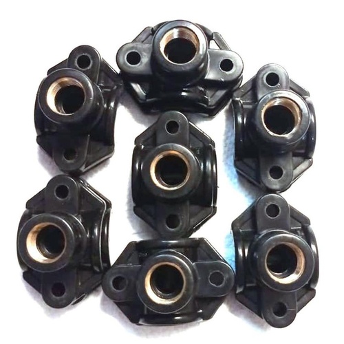 PP black saddle with brass insert, 1/2 inch size, 40mm diameter. Ideal for agricultural applications. Minimum order quantity of 300. Made in India.