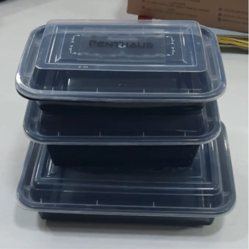 Plain, black PP rectangle disposable tray containers. Made in India, suitable for food service and packaging. Ideal for single-use applications.