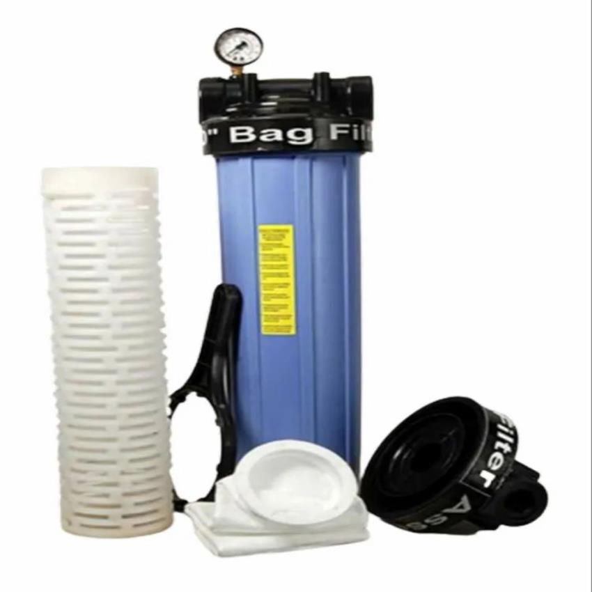 Polypropylene bag filter assembly for water filtration. Size: 20x4.5 inches, blue color. Capacity: 3000 L. Minimum order quantity: 50 pieces.