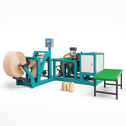 Indian-made PP woven bag making machine produces 1800-2400 bags/hour. Handles Leno, HDPE, PP, and BOPP materials with bag sizes up to 32x52 inches.