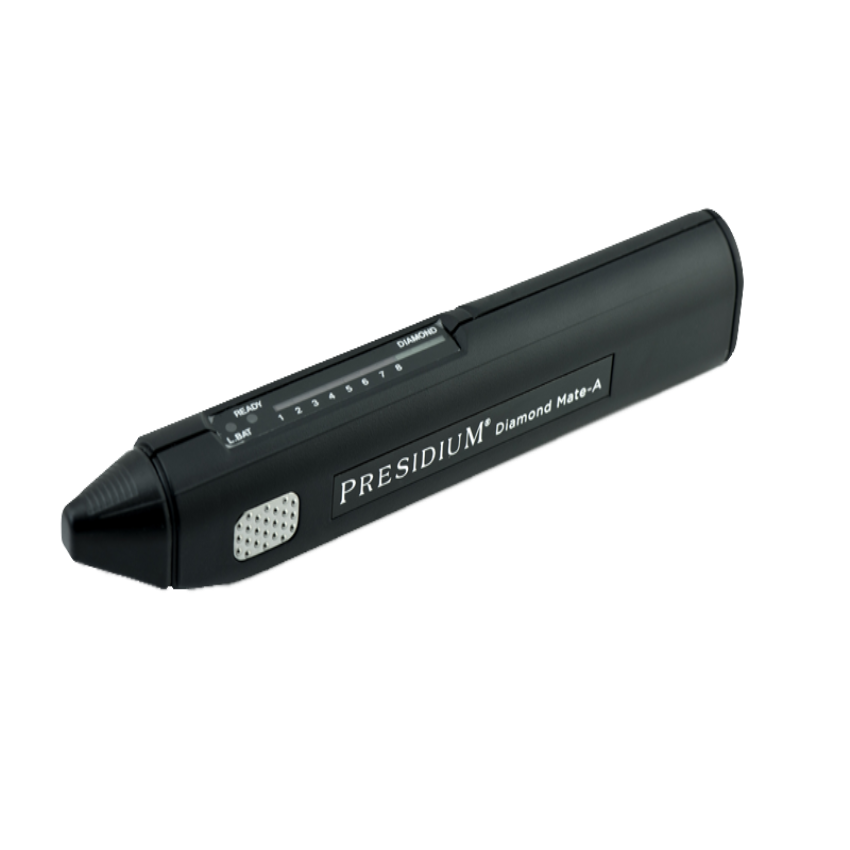 This medium-sized black Presidium diamond testing machine is designed for industrial applications. Constructed from mild plastic, it ensures reliable and accurate diamond identification for professional use.