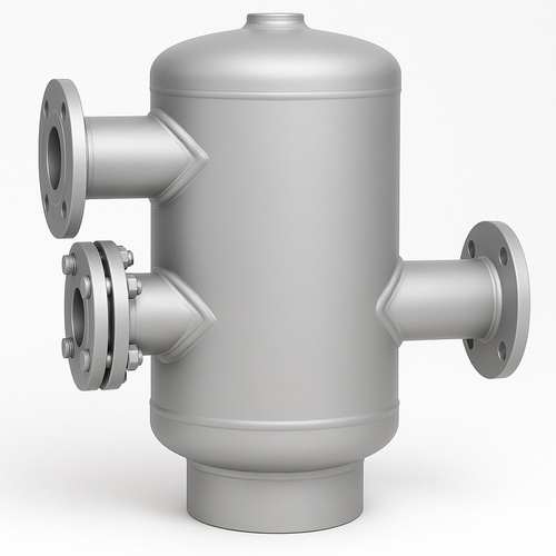 Mild steel air separator with 10/16/25 Bar pressure rating. Capacity ranges from 2 to 30 inches, suitable for chilled water and HVAC systems.