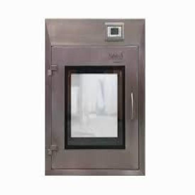 Grey positive pressure pass box, manufactured and supplied new in India. Minimum order quantity of 1 unit. Ideal for controlled environments requiring sterile air transfer.