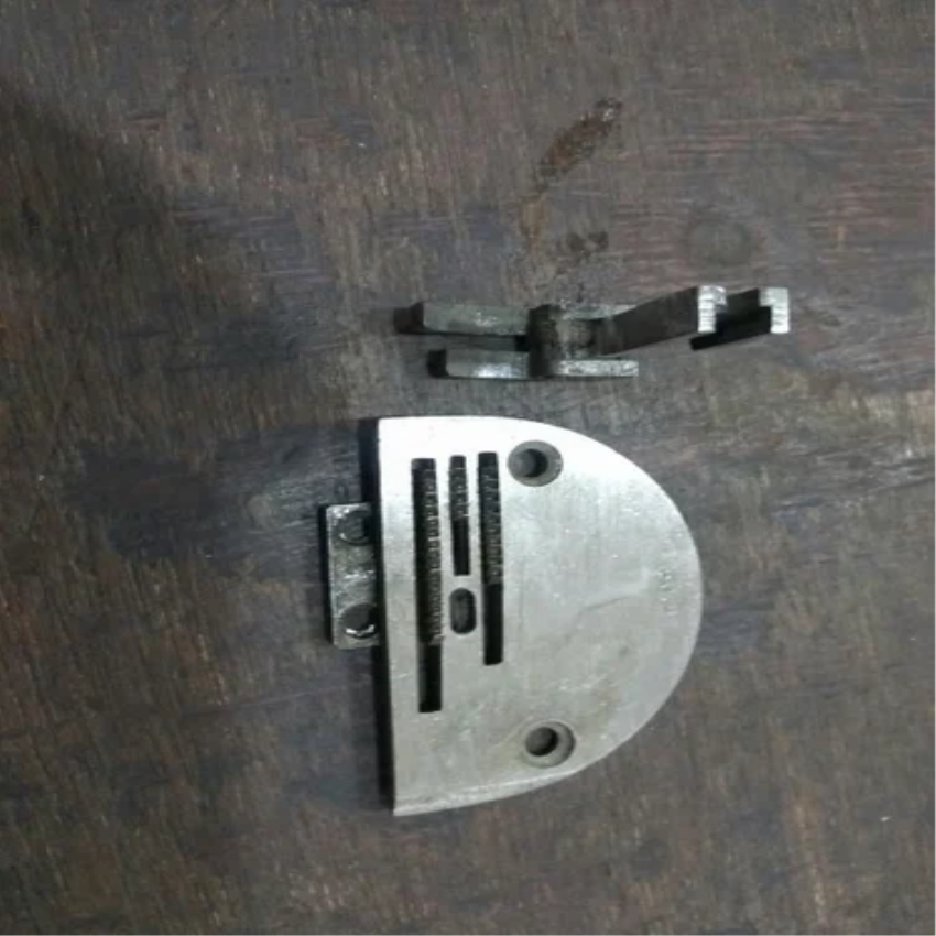 Pressure foot and needle plate set for sewing machines. Ensures consistent fabric feeding and precise stitching. Essential component for various sewing applications.