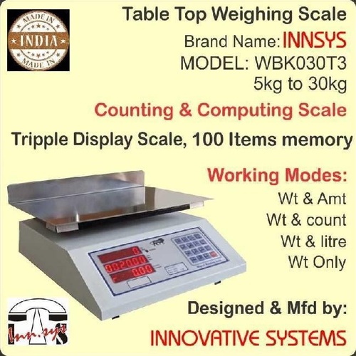 Price computing weighing scale with a capacity from 5kg to 30kg. Model WBK030T3 is suitable for retail and commercial applications, calculating prices based on weight.