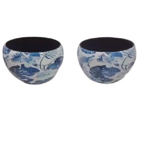 This blue and white printed iron bowl vase features a unique bowl shape. Measuring 15.25x15.25 cm, it's crafted from iron with a printed finish.