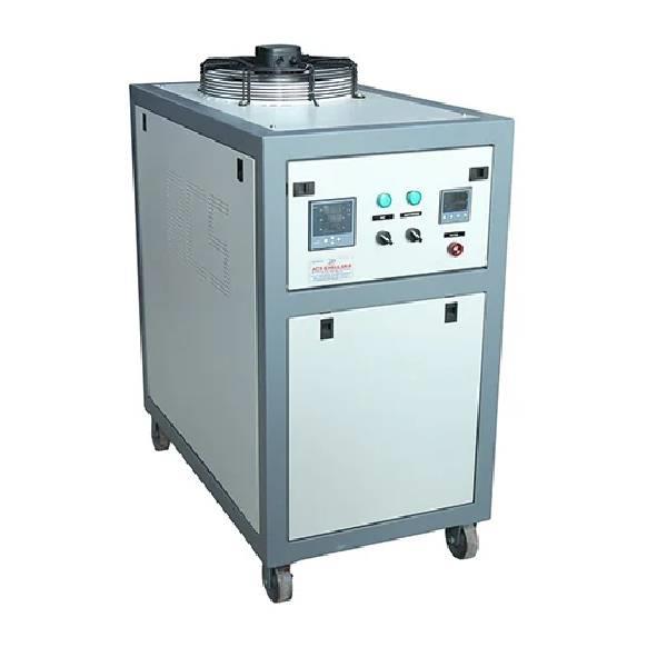 Air-cooled process chiller with 2 ton capacity. Available in single and three-phase power. Features low noise and vibration. Constructed with a copper tube material.