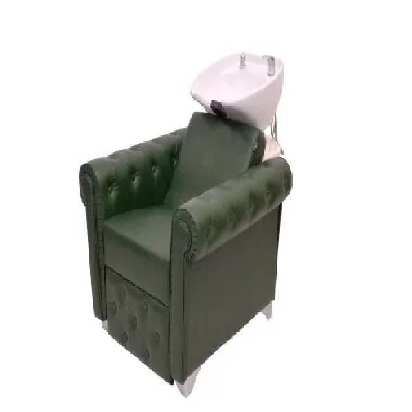 Manual shampoo station made of synthetic leather. Designed for professional use with adults. Features a footrest-free design.