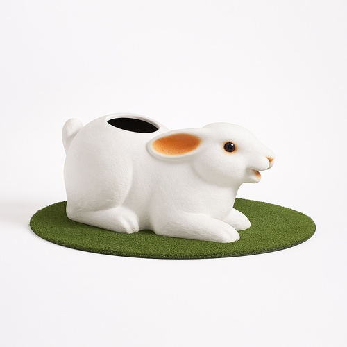 FRP rabbit dustbin for promotional use. White color, 2.4 x 1 x 1 ft dimensions, weighing 12 kg. Product code TPS-01-GA.