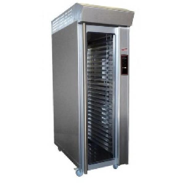Proofing cabinet with 16 tray capacity. Stainless steel construction, silver color. Ideal for bakery applications requiring controlled proofing.