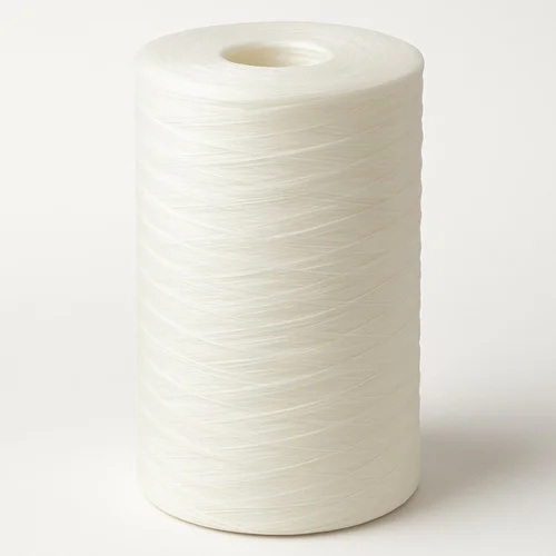 White PTFE (Polytetrafluoroethylene) wound cartridge filter with fiberglass medium. 1 mm thickness for effective water filtration applications.