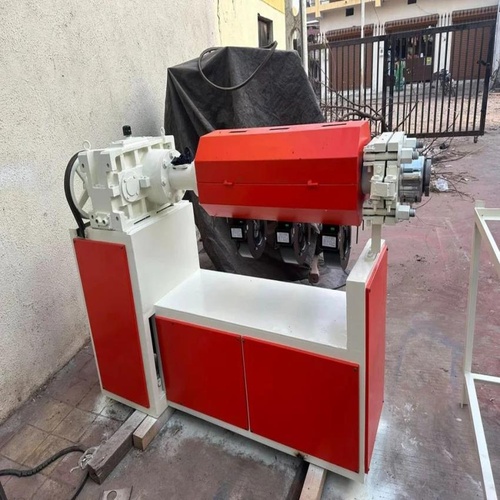 Machine designed for manufacturing PVC profiles. Engineered for efficient production of various PVC profile shapes. Suitable for industrial profile creation needs.