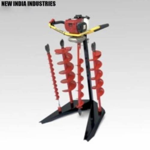 Semi-automatic pillar drilling machine for building hole plantation. Features single flight auger design, mild steel construction, and 25mm drilling diameter. Capacity: 50 holes/hour.