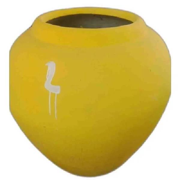 Floor-mounted oval RCC flower pot in yellow, ideal for garden use. Durable concrete construction ensures longevity for outdoor plant display.