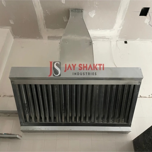 Rectangular commercial kitchen hood with a 1400 m3/h capacity. Made from galvanized and stainless steel. Suitable for commercial kitchens. Manufactured in India.